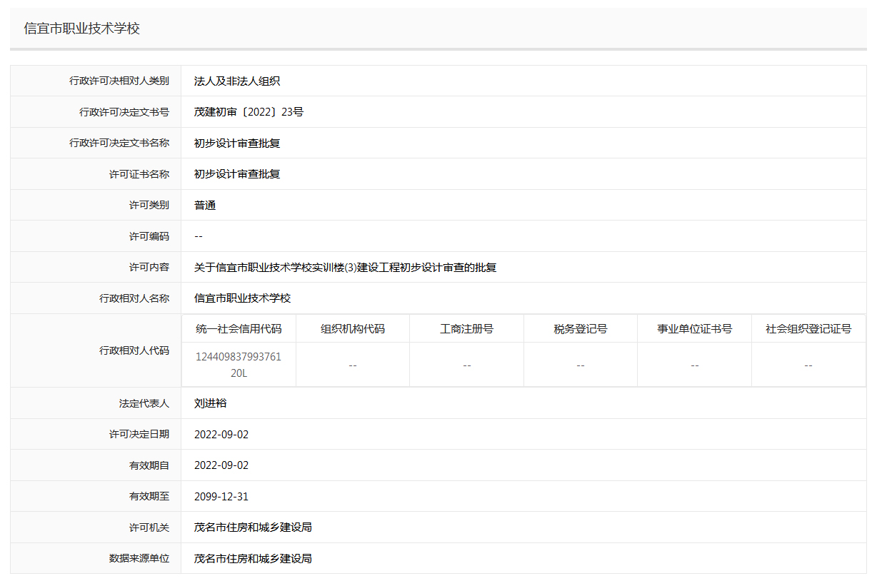 信宜市职业技术学校初步设计审查批复