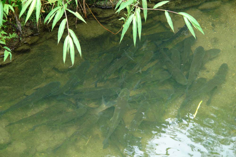 信宜市位于广东省的西南部,属于典型的山区县级市,人口130多万,属亚热带季风气候,年平均气温22.3℃,阳光充足,年日照时数1939.3小时,雨量充沛,年降雨量1724.2毫米,且分布均匀,山区地方山泉水密布,草资源丰富,山多田少,河溪纵横,渔业发展别具山区特色。凼仔养鱼是山区农民利用当地丰富、优质、无污染水资源和充足的草资源,在屋前、屋后、溪边挖一个面积很小的水塘(凼),鱼塘只有5-50平方米的砂砾小凼,水深0.8-1.2米;养殖区周围是连绵群山,山上的溪泉终年川流不息;凼仔鱼养殖的水源是高山流下的溪泉,水质清沏透明;投喂的饲料以当地的狼尾草为主,兼投象草、大芒或其他杂草,从不投喂其他饲料,也不使用化学药物治病,养殖时间长、三年一批次上市。其味道鲜美独特、品质上乘、香脆嫩滑、刺大易剔、久煮不烂、没有腥味、食而不腻,且营养价值高,其鱼含有丰富的不饱和脂肪酸,对血液循环有利,是心脑血管病人的良好食物。是具山区特色的一种生态养殖的、无公害的绿色产品。
