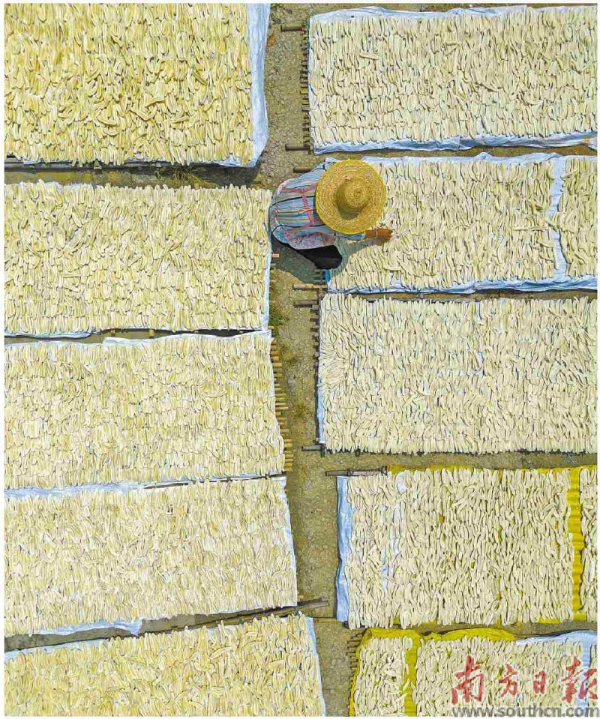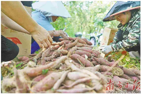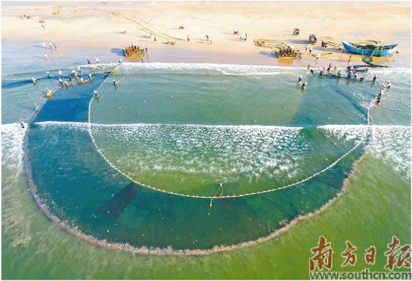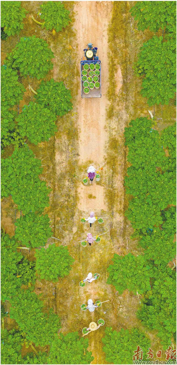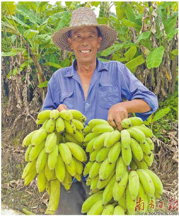 电白:丰收,从这里开始  虎头山,渔民撒出的渔网形成一个月牙形状,蔚为壮观。  新华村村民在整理挖出来的“冰淇淋”番薯。杨腾飞 摄  小良镇那庄村,农民正在农田里给水稻喷药除虫。  沙琅镇谭儒村,村民趁着烈日晒制瓜咸。  一串串弯曲圆鼓的粉蕉,是南清村村民增收的保障。杨腾飞 摄  林头镇尖角山村委会石陂岭村,采摘青木瓜的村民在林中穿梭。 今年9月23日,秋分,是第五个“中国农民丰收节”。 9月以来,在电白大地上,伴着秋季丰收的到来,不少如画的盛景也在上演。而这些,都是电白丰收的开始。 丰收从黄岭镇南清村的山上,人们挥舞的镰刀开始。 9月初,南清村的粉蕉仍处于收获季。收割、搬运、装车……普高2.5米左右的蕉林中,一串串弯曲圆鼓的粉蕉紧挨着抱叠在蕉穗上,农户用镰刀将它们割下。 “我们用村名为它命名,称为南蕉。”南清村,村民利用水旱田、旱坡、山地种植了1000多亩南蕉。一眼望去,千亩南蕉林一片翠绿,串串南蕉掩映在“蕉海”之中。这些南蕉,每亩年收入达5400元,每年为南清村带来的总收入达500多万元。“未来会继续扩大种植面积,带动村民合伙入股种植,帮助更多人致富。”南清村党支部书记、村委会主任李荣晓说,村委会积极拓展“党支部+种植专业合作社+困难户”发展模式,由合作社牵头、“能人”大户带动,引导群众因地制宜种植南蕉,加快产村融合发展。 丰收从虎头山的海滩上,海面上撒开的网开始。 清晨,一轮红日从海面冉冉升起,虎头山海边人潮涌动,赶早的渔民已开始一天的劳作,他们的身影点缀在天海一色间,成了一道美丽的风景。拉网捕鱼是电白渔民传统的生活方式,已历经千年的演变和发展。一张大网撒下,伴随着海水的波动起伏和鱼儿的游走,渔民激动地围上去分拣网里的鱼,细碎的阳光洒在他们满是喜悦的脸上。 丰收从小良镇那庄村的高标准农田里,泛黄的齐整秧苗开始。 阡陌之间,规整的机耕道连着3000多亩高标准农田。这些高标准农田,利用光、热、水等资源效率有所提高,使原来的中低产田成为旱涝保收的稳产高产田,产量提高15%左右,是电白区稳定粮食产量的有效保障。 水稻田里,稻穗已经泛黄,一些种得稍早的田里,稻穗已经全黄,个头也比旁边的“邻居”大了许多,沉甸甸地压弯了稻株。在阳光的照耀下,这些黄色的稻穗越发耀眼,让成片的稻田闪烁出金光。风起,一茬茬的水稻随风飘荡,颇让人心情愉悦。农民穿梭在田间,用水化开除虫的农药,在稻田上方喷出了一道道水幕。再过些天,这一季的稻谷就可以收割了。 丰收从林头镇尖角山村委会的坡上,农民挥洒的汗水开始。 9月18日,尖角山村委会石陂岭村120亩的木瓜园内,一棵棵木瓜树上挂满了硕大的果实。“今天我们要把这一卡车装满”,领头的工人情绪很高,带着十多名村民穿梭在木瓜林中,采摘、装箱,忙个不停。 “只要青色的,黄的不要。”果场正在采摘的是青木瓜,收购价为0.6元/斤。这些木瓜在完成装车后将被运到食品加工厂,加工成果条。近些年,林头镇青木瓜的种植规模不断扩大,种植规模已达6000亩左右,同时该镇加快推进产业链延伸,推动青木瓜原产品向加工品转化。 丰收从沙琅镇谭儒村的瓜棚上,烈日中蒸发的水分开始。 每年的春夏秋季,谭儒村的气候适宜田瓜生长,田瓜苗种下30多天便有收获。如今谭儒村有超400户村民种植田瓜,总种植面积超1000亩,已是谭儒村主要的农作物之一。 9月中旬,崔德耀家里种的4亩田瓜迎来丰收,收获田瓜近万斤。“瓜咸目前收购价3元/斤,1万斤田瓜能晒出约8000斤瓜咸。”崔德耀和妻子在家里搭好了晒制瓜咸的竹筏,这几天阳光猛烈,正好可以晒瓜咸。在谭儒村,不少村民有制作瓜咸的习惯,以土办法晒制出来的瓜咸,深受消费者欢迎。 丰收从观珠镇新华村的撂荒地,人们满脸的笑容开始。 在新华村50多亩的“冰淇淋”番薯种植基地里,2台小型机械行走在田垄之间,所到之处,翻起片片土地,一个个红皮番薯隐约可见,现场村民有的在机器后面捡拾,有的在分拣,有的在打包,一幅繁忙丰收的景象。 “这块地丢荒多年,多次试种其他粮食作物都失败了。珠海帮扶工作队多次邀请专家过来指导,才终于成功种出了番薯,虽然产量还未达预期,但是让我们看到了希望。”新华村党支部书记吴凤珍认为,这次丰收为村民注入了一针强心剂。